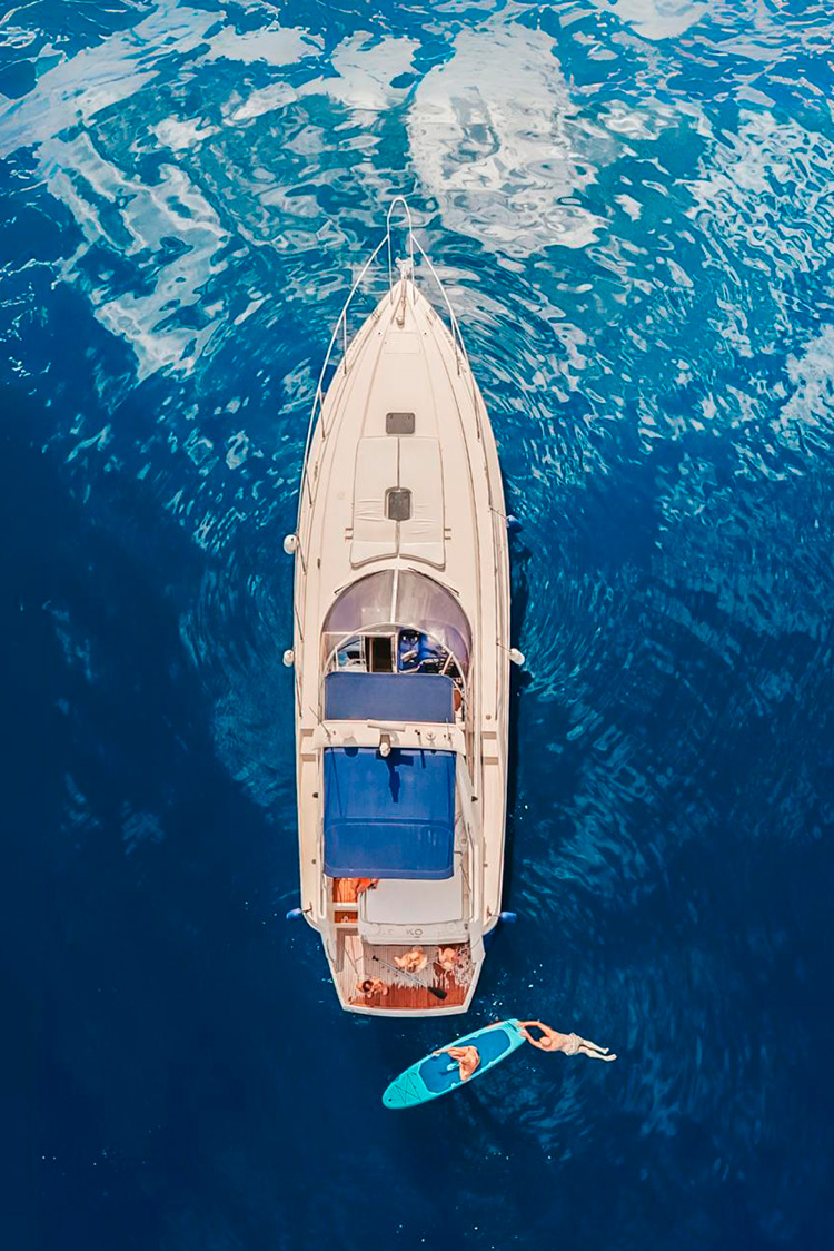 This yacht stands out with its sleek lines and high-quality finishes, showcasing an exclusive and sophisticated look. Both its exterior and interior are thoughtfully designed to create a welcoming and refined atmosphere, perfect for enjoying the sea.